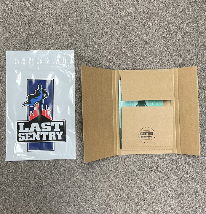 We received the custom Last Sentry Comics mailers and the Gemini boxes. These will help protect your products during the shipping process.